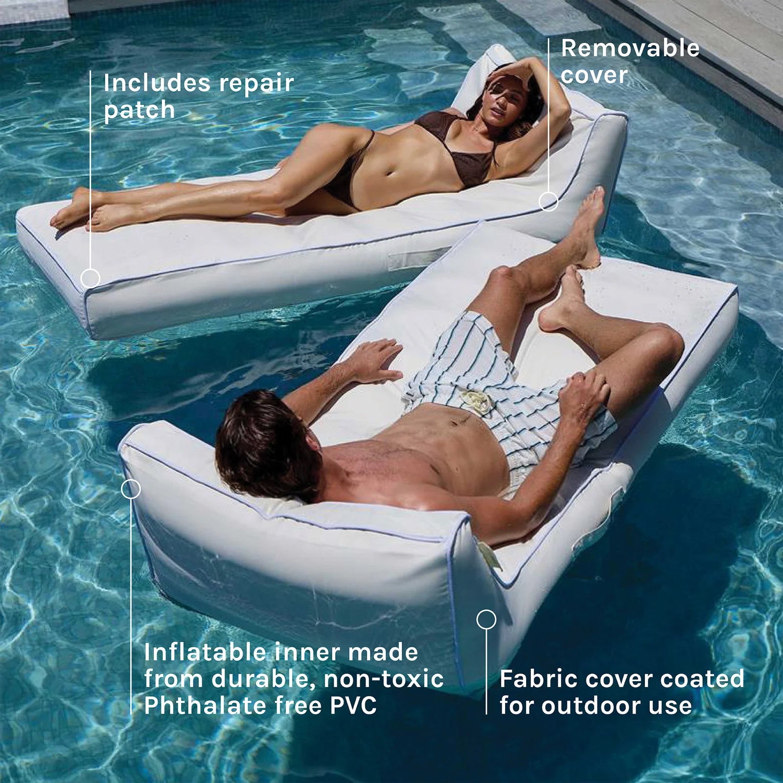 Designed for those who take their relaxation seriously, the Luxe Single Dream Float turns any pool day into a personal escape. Its sculpted silhouette brings a soft, modern elegance to the water — while the generous size invites you to stretch out, drift off, and let the stress melt away.